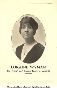(Julie) Loraine Wyman (October 23, 1885 – September 11, 1937) was an American soprano,[1] noted for her concert performances of folk songs, some of which she collected from traditional singers in field work. Paul J. Stamler has called Wyman "the first real practitioner of the urban folk revival."[2]