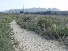 The official name of this trail is simply Marsh Trail.[53] It is unpaved on its west end and paved on its east end. It is shown on Google maps. Dogs and bicycles are prohibited. It skirts the southern edge of the wetland for 1.5 miles from North Torrey Pines Road and becomes Flintkote Avenue in Sorrento Valley, San Diego. The trailhead is across from the South Beach parking lot at Torrey Pines State Beach.