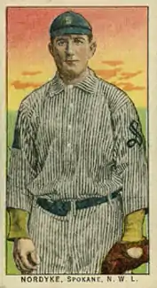 Louis Ellis Nordyke (August 7, 1876 September 27, 1945) was an American Major League Baseball first baseman who played for the St. Louis Browns for one season, from April 18 to June 27, 1906.[1] He was sold to the Browns by the Tacoma Tigers of the Pacific Coast League, after having previously been on their Champion 1904–1905 team.[1][2] He was a popular player with both fans and his fellow players in 1903, when he played for the Spokane Indians, also of the PCL.[3] Nordyke later rejoined the team in 1909, and won the league's batting championship.[3] He also played for the 1907 St. Paul Saints. In total, Nordyke played professional baseball from 1901 to 1914.[4]