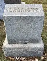Sacriste was born on June 15, 1843, in Wilmington, Delaware. He died on August 18, 1904, in La Grange, Illinois, and was buried in Mount Carmel Catholic Cemetery in Hillside, Illinois. He is known to have fathered three children.[2]
