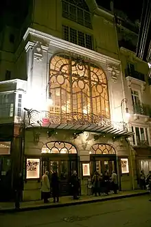 While influential, Copeau's theater was never lucrative and Jouvet left in October 1922 for the Comédie des Champs-Élysées (the small stage of the Théâtre des Champs-Élysées). He was made director of the theatre in 1924.[1] In December 1923 he staged his single most successful production, the satire Dr. Knock, written by Jules Romains.[2]:92 His characterization of the manipulative crank doctor was informed by his own experience in pharmacy school. It became his signature and his standby; he produced it 'almost every year until the end of his life'.[4] Jouvet remained at the Comédie until 1934, when he moved to the Théâtre de l'Athénée due to the high overhead of running a theatre troupe at the Comédie.[2]:92 He served as director of the Théâtre from 1934 through his death in 1951.[2]:92
