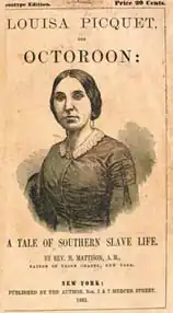 Louisa Picquet (c. 1829, Columbia, South Carolina – August 11, 1896, New Richmond, Ohio) was an African American born into slavery. Her slave narrative, Louisa Picquet, the Octoroon, or, Inside Views of Southern Domestic Life, was published in 1861.The narrative, written by abolitionist pastor Hiram Mattison, details Picquet's experiences with subjects like sexual violence, Christianity, and colorism. By producing the narrative, Mattison and Picquet hoped to raise enough money to buy Picquet's mother out of slavery.
