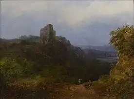View of Castle with Forested Valley.