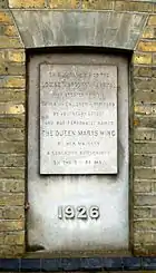 Plaque unveiled by Queen Mary on the Queen Mary Wing in 1926