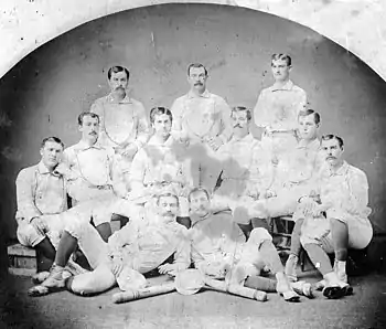 The Grays were undone by Major League Baseball's first gambling scandal. The team was in first place in August 1877, then suddenly lost seven games and tied one against the Boston Red Stockings and Hartford Dark Blues. Boston ended up winning the pennant, seven games ahead of the second-place Grays. A Courier-Journal story questioning the team's conduct was written by John Haldeman, the owner's son.[1]