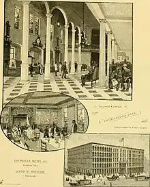 - ↑ "Old Louisville Hotel, Gay '90s Showplace, To Be Razed to Make Way for Parking". The Courier-Journal. 1949-10-06. p. 25. Retrieved 2024-01-12.