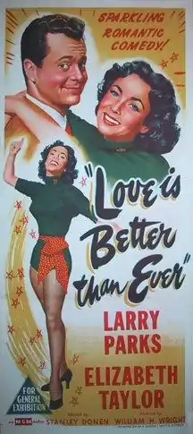 Love Is Better Than Ever is a 1952 American romantic comedy film directed by Stanley Donen from a screenplay by Ruth Brooks Flippen, starring Larry Parks and Elizabeth Taylor. The plot concerns a small-town girl who falls in love with a big-city talent agent.[2]