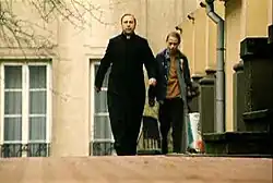 The priest is at the confessional when a young girl shows up claiming to be his daughter. Her story checks out: he knows her mother from Radom, 11 years ago. The mother died six years ago, the girl says. The girl returns to the orphanage she escaped from. Soon the parish learns but wants the priest to stay on. At the end, he decides to quit the church to be a father to his daughter.