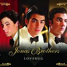 "Lovebug" is a song by the American group Jonas Brothers. It was released as the third official single off their third studio album, A Little Bit Longer, on September 8, 2008. Lyrically, "Lovebug" is about being smitten by girl for the first time and attracting feelings for said girl from that moment. A music video was released to accompany the single and is a period piece romance that was inspired by The Notebook.