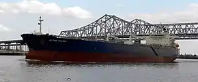 On the lower Mississippi, from Baton Rouge to the Gulf, the navigation depth is 45 feet, allowing for container ships and cruise ships to dock at the Port of New Orleans and bulk cargo ships shorter than 150 foot air draft to fit under the Huey P. Long Bridge and traverse the Mississippi to Baton Rouge.[7] There is a feasibility study to dredge this portion of the river to 50 feet to allow New Panamax ship depths.[8]