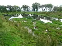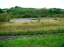 Marked on Ordnance Survey maps as 'The Lochs', it was locally known as the Lowes Loch and lies on the old 'Lowes Lands'.[1] Four lochs may have once been present, a small one in front of Lows Cottage, a second along to the west of the surviving loch, and a smaller fourth one, now partly drained by a deep ditch, sitting next to the older of the two Lochlands Farms ruins.