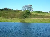 Blaeu's map of 1684, pbased on Timothy Pont's map of circa 1604, names a 'Loch of Hill' and Roy's map of circa 1747 shows two small lochs, with the outflow of the western loch running down to the Muir Burn and then into the Roebank Burn.[2] Thomson's map of 1832 shows a single loch lying below Lows Farm and draining east into the Dusk water.[3] OS maps of the 1850s do not indicate open water and a discreet clump of trees suggests a small island.[4]