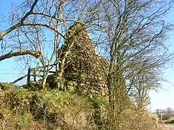 A small church may have been built here, possibly at the site of the original small Lochlands building, which stood on the bank of a small loch, to 'counteract' the many pagan sites located at Cuff Hill, such as the lost 'Druid's Stone Circle, the Druids' Graves or Caves (a long barrow), the now destroyed Four Stones, a standing stone, etc.[14] The name Cuff itself has been interpreted as meaning Druid or Priest.[1] Saint Inan's Well and Chair are close by and one of the hills in the area, marked as Krelig Hill, was once topped by a cross.[15]