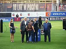 ![]() Mata receiving a medal for Ekstraklasa third-place finish in 2021 | |||