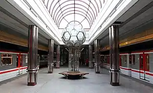 Lužiny (Czech pronunciation: [ˈluʒɪnɪ]) is a Prague Metro station on Line B, located in Stodůlky, Prague 13. The station was opened on 11 November 1994 as part of the extension of Line B from Nové Butovice to Zličín.[2]