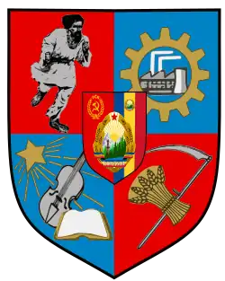 Arms of Botoșani County during the communist period. The five-pointed star as a symbolic reference to Eminescu