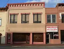 Lumberton Commercial Historic District is a national historic district located at Lumberton, Robeson County, North Carolina. The district encompasses 64 contributing buildings and 1 contributing site in the central business district of Lumberton. It includes buildings built between about 1840 to 1941 in a variety of popular architectural styles including Classical Revival and Streamline Moderne. Located in the district are the separately listed Carolina Theatre and Planters Building. Other notable buildings include the Proctor Law Office (c. 1840), McLeod Building (1879), (former) National Hotel, (former) Efird's Department Store, Huggins Star Shoe Shop (c. 1895), National Bank of Lumberton (1914), Dresden Cotton Mills Office Building, (former) Lumberton Municipal Building (1917), and Stephens Funeral Home (1936).[2]