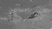 Lyell is a lunar impact crater that lies along the eastern edge of the Mare Tranquillitatis, at the northern arm of the bay designated Sinus Concordiae. It was named after Scottish geologist Charles Lyell.[1] To the north along the edge of the lunar mare is the crater Franz. The region of terrain to the east of Lyell is named Palus Somni.