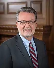 Lynn Wayne Rogers (born September 11, 1958) is an American politician and businessman who served as the 41st Kansas State Treasurer from 2021 to 2023. He previously served as the 51st lieutenant governor of Kansas from 2019 to 2021. A Democrat, he had previously served on the board of Wichita Public Schools from 2001 to 2017,[3] and in the Kansas Senate representing the 25th district in west Wichita from 2017 to 2019.[4]