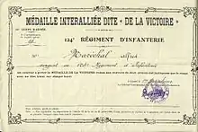- ↑ Champenois, Marc (24 December 2011), "Médaille interalliée dite Médaille de la Victoire", France-phaleristique.com (in French), retrieved 6 June 2011