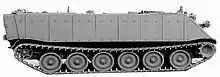 The AMEV utilises a high-mobility stretched M113A4 chassis as used by the Mobile Tactical Vehicle Light (MTVL), with the standard M113 hull lengthened 34 inches and equipped with an additional road wheel (for a total of six on each side), to give the AMEV excellent cross-country capability and ride characteristics. The vehicle shares common components with the M577A4 Armored Treatment Vehicle.[4]