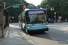 The M79 bus runs crosstown along 79th Street in Upper Manhattan. The route begins at West 79th Street and Riverside Drive in the Upper West Side. It proceeds east along 79th Street to Amsterdam Avenue, where the eastbound bus then follows 79th Street to Amsterdam Avenue and uses Amsterdam Avenue to get to 81st Street, and the westbound bus uses 81st Street to get to Columbus Avenue and then take that down to 79th Street. After Central Park West, the bus then crosses the 79th Street Transverse through the park, stopping about halfway through the transverse. The M79 exits the transverse at East 79th Street and 5th Avenue, continuing on East 79th Street through the Upper East Side until turning left onto York Avenue and then right again onto 80th Street before arriving to its terminus at 80th Street. The bus then turns right on East End Avenue and then right onto 79th Street to start its westbound route.[1][5][6]