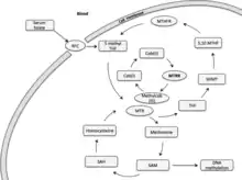 Biological processes influenced by MTRR include: sulfur amino acid metabolic process, DNA methylation, methionine metabolic process, methionine biosynthetic process, methylation, S-adenosylmethionine cycle, homocysteine catabolic process, folic acid metabolic process, oxidation-reduction process and negative regulation of cystathionine beta-synthase activity.[7][8]