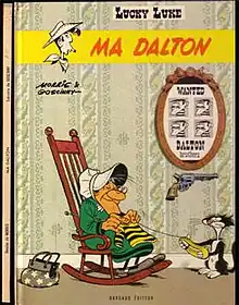 Ma Dalton is a Lucky Luke comic written by Goscinny and illustrated by Morris. It was first published in French in the year 1971 by Dargaud. English editions of this French series have been published by Cinebooks and Tara Press. Ma Dalton was inspired by real-life Ma Barker.