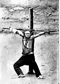 Yang Zengxin decided that Ma's excesses were too great, and sent Ma Shaowu, another Hui military commander, to attack and replace him.[6] Ma Shaowu attacked Ma Fuxing, and then personally executed him by shooting him after receiving a telegram from Yang Zengxin. Ma Fuxing's body was tied to a cross to be put on display.[7] Ma Shaowu then was appointed Daotai of Kashgar.