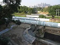 The construction site for drainage improvement project near Tong Hang, Fanling