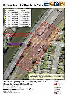 2. 1 2 3 4 5 "Macksville Railway Station group". New South Wales State Heritage Register. Department of Planning & Environment. H01184. Retrieved 2 June 2018. Text is licensed by State of New South Wales (Department of Planning and Environment) under CC-BY 4.0 licence.