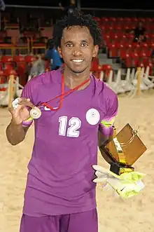 Jhorialy Rafalimanana receives 2015 CAF Beach Soccer Championship's Best goalkeeper award