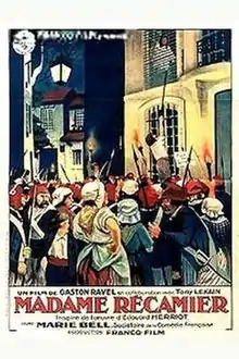 Madame Récamier is a 1928 French silent historical film directed by Tony Lekain and Gaston Ravel and starring Marie Bell, Françoise Rosay, and Edmond Van Daële.[1] The film portrays the life of Juliette Récamier, a French society figure of the Napoleonic Era. She was also the subject of a 1920 German film of the same name.