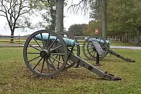 ![]() Two 24-pounder howitzers mark the location of the Madison Light Artillery at Gettysburg National Military Park.[note 1] | |