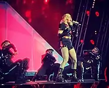Madonna performing "Vogue" on The MDNA Tour in 2012. It drew praise but also criticism from some members of the collective, particularly many from the Black,[58] and ballroom communities