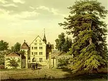 Magdalene married in August 1631[4] to Bernhard Moritz Freiherr von Oeynhausen-Velmede[note 1] (1602[6] – Leipzig, 20 November 1632[3]). After the death of her husband, Magdalene went to the dower Grevenburg Manor, where in March 1633 Count Simon Louis of Lippe-Detmold obtained a sauvegarde for her from Landgrave William V of Hesse-Kassel, requesting the landgrave not to use her husband's services on the imperial side against her.[7]