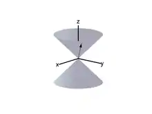A representation of an easy cone. All the minimum-energy directions (such as the arrow shown) lie on this cone.