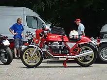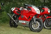 Magni offered a range of parts to upgrade MV fours. They also manufactured complete motorcycles using the parts. The specification varied from customer to customer.[22] Amongst the options were big-bore kits to bring the capacity up to 837 cc (as used on the MV 850 SS Monza),[23] Dell'Orto carburettor kits,[24] exhaust systems, drive chain conversions,[5] the lightweight Magni frame, which was based on Magni's design for the F750 S Imola racer,[5] EPM wheels, 4ls drum brakes and Brembo disc brakes.[25]