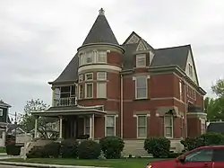 Magnus J. Carnahan House is a historic home located at Washington, Daviess County, Indiana. It was built between 1896 and 1902, and is a 2+12-story, Queen Anne style brick dwelling on a raised basement. It features a round corner tower with a conical roof, one-story porch and balcony, and complex hipped and gable roof. Also on the property is a contributing carriage house.[2]:5