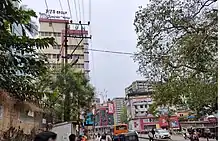 Mahatma Gandhi Road, M. G. Road for short, is a road situated in Kodialbail in the city of Mangalore, India. Like most of its counterparts in other Indian cities, this road is in the heart of the city and is one of the busiest roads in Mangalore, consisting of shopping malls, educational institutions, media houses, government offices, etc. M. G. Road starts at P. V. S. Circle and joins the Kulur Ferry Road near Lady Hill.