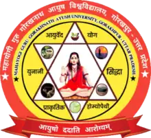Mahayogi Guru Gorakhnath AYUSH University, Gorakhpur,[1] formerly State Ayush University, Uttar Pradesh, is an affiliating State University located in Gorakhpur. It was established through the Uttar Pradesh Act No. 6 of 2020,[2] specializing in Ayurveda, yoga & naturopathy, Unani, Siddha and homoeopathy (AYUSH). It was renamed as Maha Yogi Guru Gorakhnath AYUSH University, Gorakhpur by the Uttar Pradesh Act No. 6 of 2021.[1]