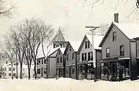 273 Main Street, which stands at the entrance to Camp Hammond, is a "highly-altered former church" built in 1880.[4] In November 1900, the saw mill of W. H. Walker and A. H. Cleaves was established across from where the Grand Trunk depot stands today.[20]