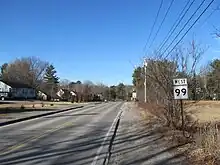 State Route 99 (SR 99) is part of Maine's system of numbered state highways, located in York County. It runs 8.7 miles (14.0 km) from an intersection with SR 109 in Sanford to Kennebunk, where it meets SR 9A and U.S. Route 1 (US 1). SR 99 is signed as an east–west route.