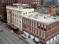 Designed by John Eberson under direction of Karl Hoblitzelle, the Majestic Theatre was constructed in 1920 as the flagship theater for Interstate Amusement Company, a chain of vaudeville houses.[4] The $2 million Renaissance Revival structure opened on April 11, 1921 with a seating capacity of 2,800.[5] It replaced a previous theater of the same name (located at Commerce Street and St. Paul Street) which burned down December 12, 1917. Operations of the Majestic were moved to the Dallas Opera House which was renamed the Majestic Theater until the new Majestic was completed.