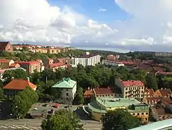 The buildings significant to Majorna are the three storey buildings where the first storey is built in stone and the topmost two are built of wood, called Landshövdingehus. They were frequently built in Gothenburg during the late 1800s and early 1900s. In Majorna they represent a flat, urban neighborhood, with tree lined avenues, courtyards, small shops in the ground floor of the buildings, and details that testify of the fine craftsmanship put into the bay windows, brick arches and the forged steel railings.[3] A large number of the buildings still remains, but in some areas they have been replaced by newer constructions. The upper parts of the hills in Gothenburg were not built-up, with the exception for some shacks, until the mid 20th century; there are mostly buildings from the 1960s and 1970s, some of them in a Functionalistic style.[3]