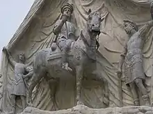 The surname Malaspina means "bad thorn" or "ill-willed thorn" in Italian; some historians believe the surname originated in the time of Ancus Marcius as some paintings in the halls of castle of Fosdinovo may suggest. Other historians believe the name may have originated from a legend regarding the death of an enemy, King Merovingio Teodeberto I. The legend, which is narrated on five sandstone tiles at the entry gate of the Malaspina castle of Godiasco,[5] tells how the king was killed with a thorn. Others believe the name originated from the remarkably bad attitude of Albert Malaspina or some of his relatives held with others.[6]