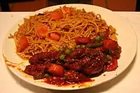 Sri Lankan Malay cuisine has played a significant role in shaping Sri Lankan cuisine. Achcharu is a dish that originates from the local Malay community and is now widely popular among all ethnic groups in the country.[21][22] It is a selection of vegetables in a pickled sauce and blends sweet, sour and spicy flavours.[23] Mee goreng and nasi goreng are also popular, a result of cultural influences from Indonesia and the country's Malay community.[24][25][26]