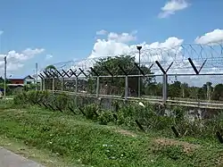 In 2001, the two countries agreed to construct just one wall along the border which would be just inside Thai territory. The new border wall is 2.5 m high and made up of a concrete lower half and steel fencing on the upper half. At the base, barbed wire runs along the length of the wall.[4] The reason given for the construction of the wall was to curb smuggling and encroachment. However, security concerns arising from the South Thailand insurgency in the late-1990s and early-2000s have also been an impetus for the barrier's construction.