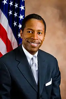 Smith was first elected to the New York State Senate in a 2000 special election. He was elected minority leader in January 2007, succeeding David Paterson.[4] After the 2008 state elections, Democrats gained a majority of seats in the State Senate for the first time in 40 years, and Smith was subsequently chosen as Majority Leader and Temporary President of the body in January 2009. He was the first African American to hold this position.[5] However, on June 8 of that year, Sens. Pedro Espada Jr. and Hiram Monserrate joined with the thirty Republicans in voting to replace Smith as Senate Majority Leader, triggering the 2009 New York State Senate leadership crisis.[6] The crisis concluded the following month when Espada and Monserrate abandoned their alliance with the Republicans and rejoined the Senate Democratic Conference. As a compromise, Smith retained only the title of Temporary President of the Senate, with the title of Majority Leader going to Espada.[7]