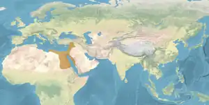The term 'Mamluk Sultanate' is a modern historiographical term.[11] Arabic sources for the period of the Bahri Mamluks refer to the dynasty as the 'State of the Turks' (Dawlat al-Atrak or Dawlat al-Turk) or 'State of Turkey' (al-Dawla al-Turkiyya).[12][13][11] The other official name was 'State of the Circassians' (Dawlat al-Jarakisa) during Burji rule. A variant thereof (al-Dawla al-Turkiyya al-Jarakisiyya) emphasized the fact that the Circassians were Turkic-speaking.[11]